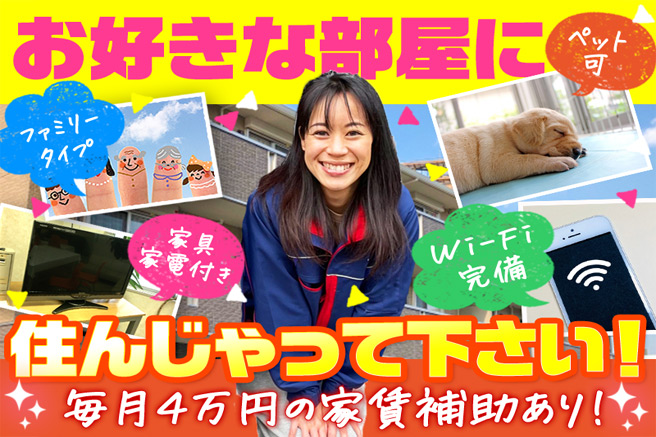 3ヶ月は寮費無料でOK!引越し費用も会社が負担します♪