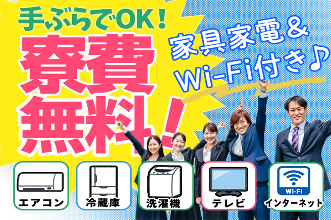 ※寮にはテレビ・冷蔵庫・洗濯機などの生活家電とWi-Fi環境をご用意しますので手ぶらでお越しください。