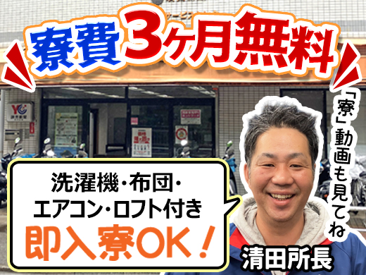 アルバイトさん大募集!今だけ→寮費3ヶ月無料+家電ロフト付き寮完備+入社祝金あり