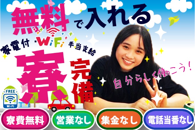 \営業も集金も電話番もナシ/家電付の寮に無料で住める!Wi-Fi手当も支給します