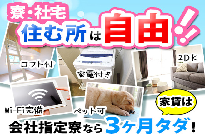 \入社祝金10万円支給/\自由に選べる寮完備/\寮費3ヵ月無料/