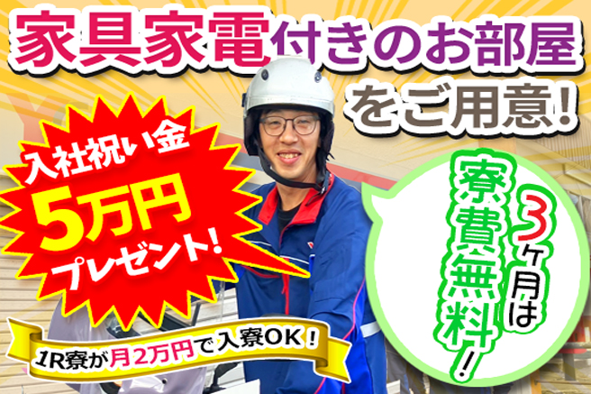 ★入社祝い金5万円★寮費3ヵ月無料!何でも揃った寮に即入寮OK!