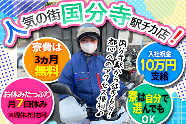 武蔵小杉に月2万円~入寮OK/3ヵ月は寮費無料/原付免許なしの方は自転車配達OK